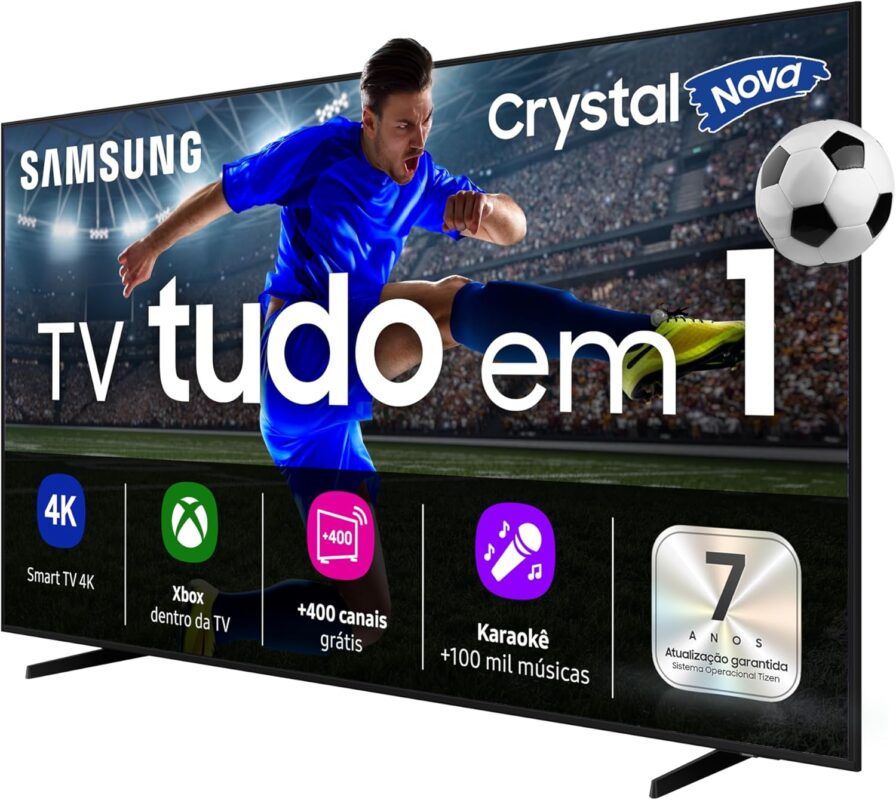 Qualidade de Imagem: Painel Crystal UHD 4K com resolução de 3840x2160, processador Crystal 4K e taxa de atualização de 60Hz