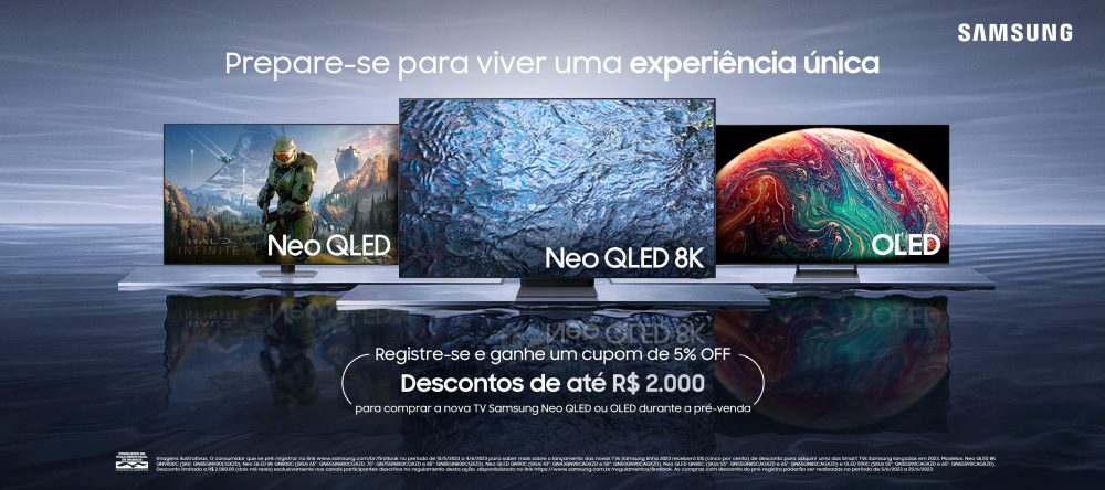 Sistema Smart: Plataforma Tizen com Bixby e compatibilidade com Alexa, impulsionada por processador Hyper Real